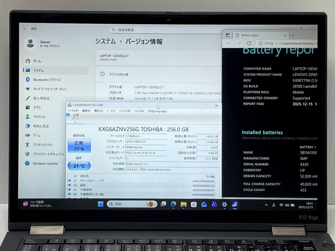 第11世代Core i7 ThinkPad X13 YOGA GEN2 Core i7 1165G7 2.8GHz/16GB/NVMe256GB/WiFi WIN11/13.3FHD+タッチパネル