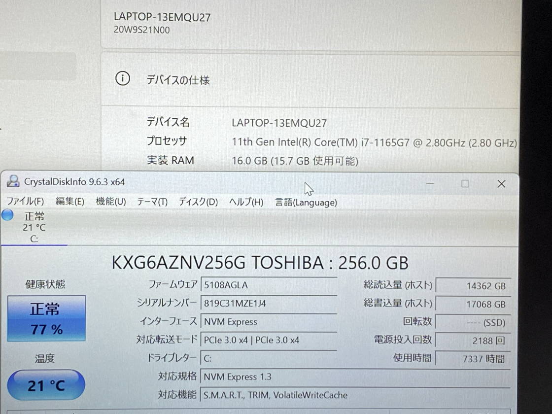 HDDNVMe256GB光学ドライブ非搭載モデル