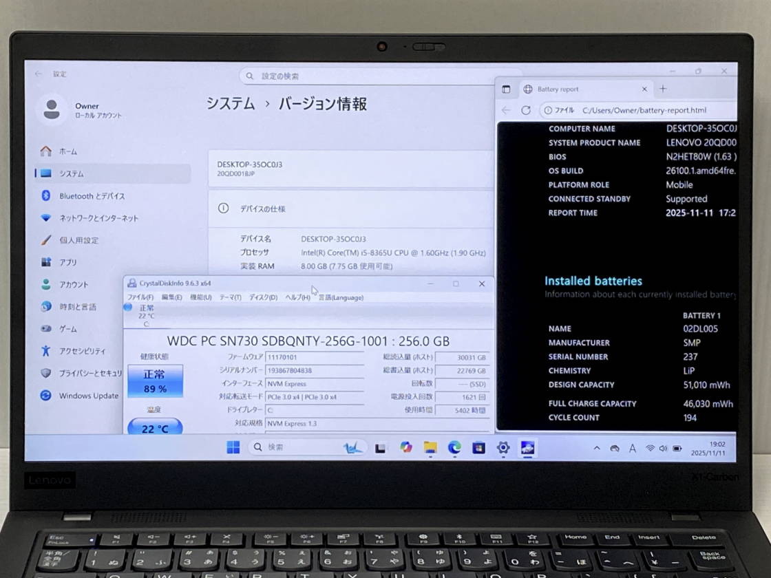 バッテリ充電可 OS表示時間3時間25分~5時間26分 実測ではございませんので目安として